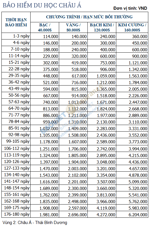 4.2. Phí bảo hiểm du học khu vực Châu Á